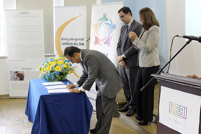 A marcar a formalização da Rede,  o Alto-comissário para as Migrações, Pedro Calado, a Subdiretora-Geral da Educação, Eulália Alexandre, e o Diretor Executivo da Fundação Aga Khan Portugal, Karim Merali, assinaram o respetivo Memorando.